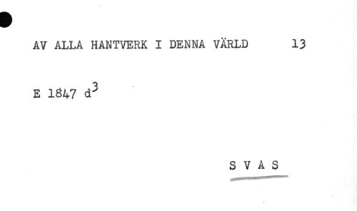 //// AV ALLA HANTVERK I DENNA VÄRLD 13 //// E 1847 d3 //// S V A S //// ... ////
