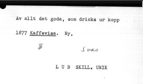 //// Av allt det goda, som dricks ur kopp //// 1877 Kaffevisa. Ny, //// # r //// L U B SKILL. UNIK ////