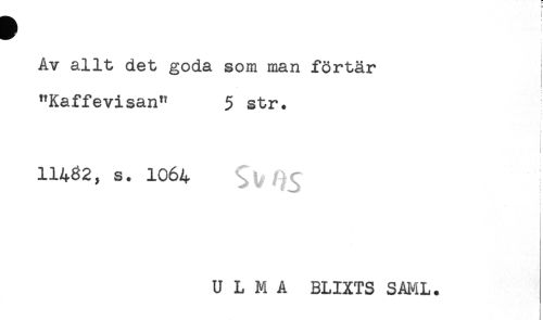 //// Av allt det goda som man förtär //// "Kaffevisan" 5 str. //// t //// 11482, s. 1064 //// U L M A BLIXTS SAML. ////