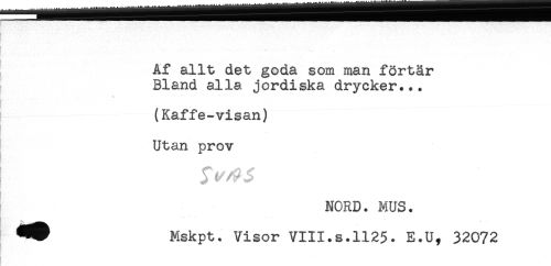 //// Af allt det goda som man förtär //// Bland alla jordiska drycker... //// t ^ ....... //// (Kaffe-visan) //// Utan prov //// NORD. MUS. //// Mskpt. Visor VIII.s.1125. E.U, 32072 ////