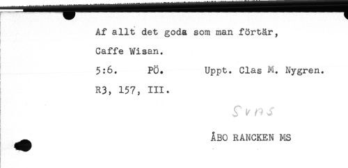 //// Af allt det goda som man förtär, //// Caffe Wisan. //// 3:6. PÖ. Uppt. Clas M. Nygren. //// R3, 157, III. //// f ^ ^ J //// ÅBO RANCKEN MS ////