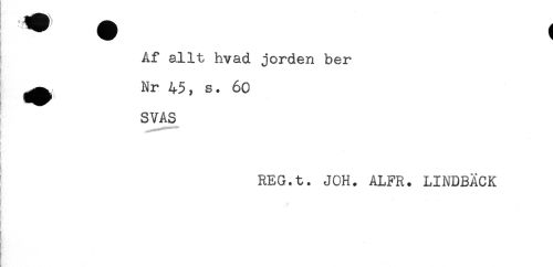 //// Af allt hvad jorden ber //// < //// ^^ Nr 45, s. 60 //// ! SVAS //// i //// [ , //// REG.t. JOH. ALFR. LINDBÄCK //// & ////