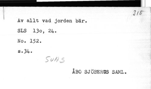 //// ^ J/^ //// s //// Av allt vad jorden bär. //// SLS 13o, 24. //// No. 152. //// s.34. //// ÅBO SJÖBERGS SAML. ////