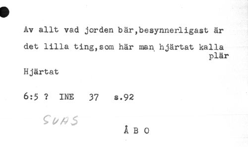 //// Av allt vad jorden bär,besynnerligast är //// det lilla ting,som här man hjärtat kalla //// plär //// Hjärtat //// 6:5 ? INE 37 s.92 ////
