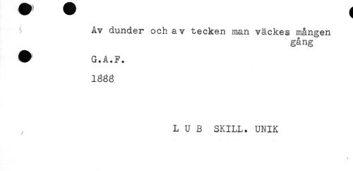 //// Av dunder och av tecken man väckes mången //// gång //// # G.A.F. //// 188g //// ^ L U B SKILL. UNIK ////