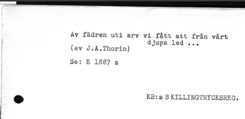 //// t ' //// < //// J //// Av fädren uti arv vi fått att från vårt //// ^ , djupa led ... //// (av J.A.Thorin) //// - //// Se: E 1337 z //// - //// *< //// ^ KB:s SKILLINGTRYCKSREG. ////