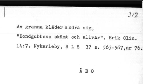 //// ! j/^ //// Av granna kläder andra sig, //// "Bondgubbens skämt och allvar". Erik Olin. //// 14:7. Nykarleby, S L S 37 s. 563-567,nr 76. ////