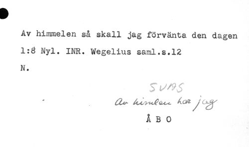 //// Av himmelen så skall jag förvänta den dagen //// 1:3 Nyl. INR. Wegelius saml.s.12 //// N. ////