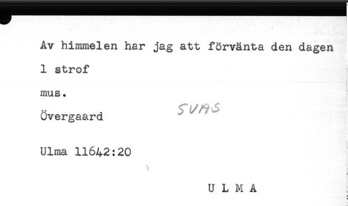 //// < //// * < //// ^ //// Av himmelen har jag att förvänta den dagen //// 1 strof t //// mus. //// " M/ -. //// Overgaard //// t //// Ulma 11642:20 //// ! //// ULMA //// ' * Jr //// r ////