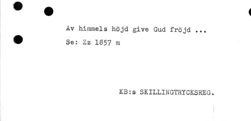 //// Av himmels höjd give Gud fröjd ... //// ^ Se: Zz 1857 m //// KB:s SKILLINGTRYCKSREG. ////