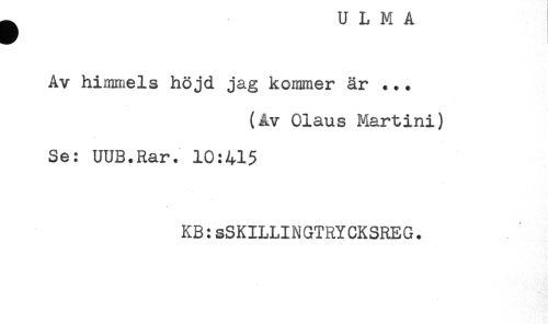 //// Av himmels höjd jag kommer är ... //// (Av Olaus Martini) //// Se: UUB.Rar. 10:415 //// KB:sSKILLINGTRYCKSREG. ////