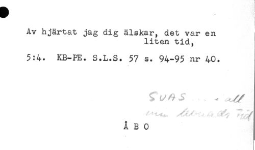 //// Av hjärtat jag dig älskar, det var en //// liten tid, //// 5:4. KB-PE. S.L.S. 57 s. 94-95 nr 40. //// * //// $ t/<9 3* ^ //// ' r f , , .. . ..f - , //// ÅBO ////