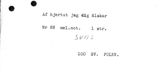 //// Af hjertat jag dig älskar //// i Nr mel.not. 1 str. //// 100 SV. FOLKV. ////