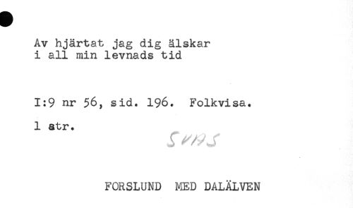 //// Av hjärtat jag dig älskar //// i all min levnads tid //// 1:9 nr 56, sid. 196. Folkvisa. //// 1 atr. //// FORSLUND HED DALÄLVEN ////