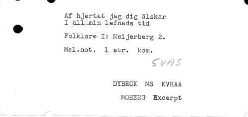 //// Af hjertat jag dig älskar //// ^ I all.min lefnads tid //// Folklore 1: Meijerberg 2. //// Mel.not. 1 str. kom. //// DYBECK MS KVHAA //// MOBERG Excerpt //// .../ \....___ _ _ //// /