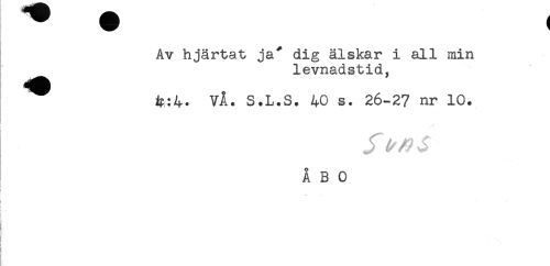 //// Av hjärtat ja^ dig älskar i all min //// levnadstid, //// ^ VÅ. S.L.S. 40 s. 26-27 nr 10. //// ÅBO //// ! //// i //// t! //// C //// i //// i ////