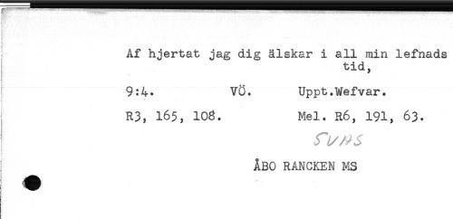 //// < //// < ^ //// Af hjertat jag dig älskar i all min lefnads //// tid, //// 9:4. VÖ. Uppt.Wefvar. //// a t — s ^ //// T //// R3, 165, 108. Mel. R6, 191, 63. //// t fl!//? jr //// ÅBO RANCKEN MS ////