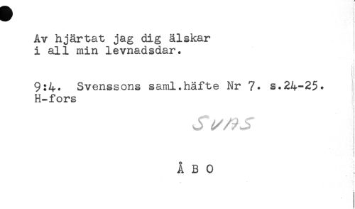 //// Av hjärtat jag dig älskar //// i all min levnadsdar. //// . j //// I //// 9:4. Svenssons saml.häfte Nr 7- s.24-25. //// H-fors //// i //// i //// ) //// t //// t //// i ////