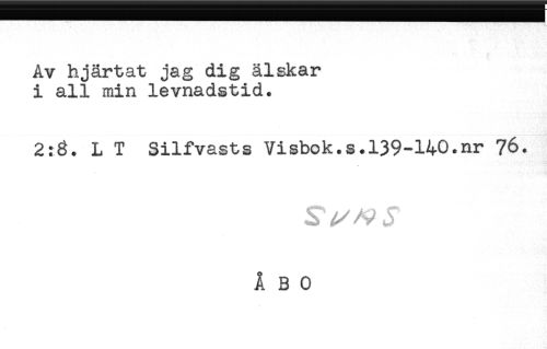//// Av hjärtat jag dig älskar //// i all min levnadstid. //// 2:8. L T Silfvasts Visbok.s.139-140.nr 76. ////