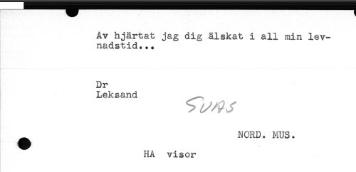 //// Av hjärtat jag dig älskat i all min lev- //// nadstid. .. //// Dr //// Leksand //// ^ NORD. MUS. //// I- " ' ' ' //// HA visor ////
