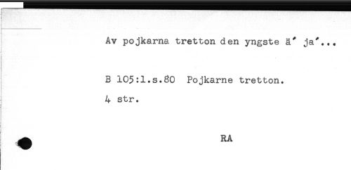 //// Av pojkarna tretton den yngste ä* ja*... //// ! //// < //// B 105:l.s.30 Pojkarne tretton. //// 4 str. //// B; //// ^ RA ////