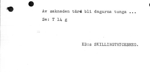 //// v Av saknaden tärd bli dagarna tunga ... //// Se: T 14 g //// i ii //// KB:s SKILLINGTRYCKSREG. ////