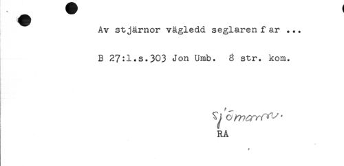 //// Av stjärnor vägledd seglaren far ... //// -- //// B 27:1.s.303 Jon Umb. 8 str. kom. //// RA //// ? ////