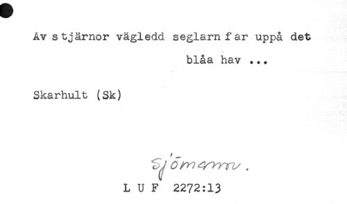 //// Av stjärnor vägledd seglarn far uppå det //// * //// blåa hav ... //// Skarhult (Sk) //// L U F 2272:13 ////