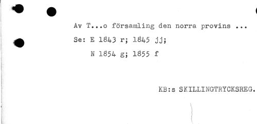 //// Av T...o församling den norra provins ... //// ^ Se: E 1843 r; 1845 jj; //// N 1854 g; 1855 f //// i //// KB:s SKILLINGTRYCKSREG. ////
