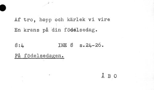 //// Åf tro, hopp och kärlek vi vire //// En krans på din födelsedag. //// 8:4 INE ^ s.24-26. //// På födelsedagen. //// Å BO ////