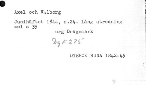 //// h: //// Axel och Valborg ! //// ! //// ) //// Junihäftet 1844, s.24. lång utredning //// mel s 35 //// urg Dragsmark //// ! //// DYBECK RUNA 1342-45 //// i //// : ////