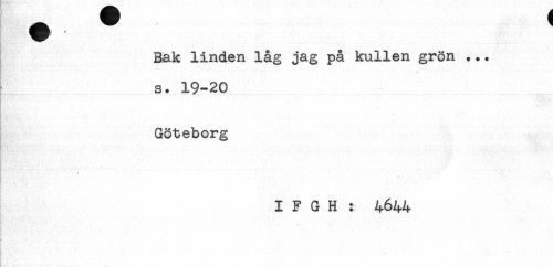 //// Bak linden låg jag på kullen grön ... //// s. 19-20 //// Göteborg //// * //// I F G H : 4644 //// . ////