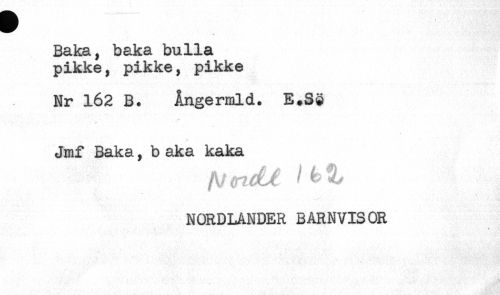//// Baka, baka bulla //// pikke, pikke, pikke //// Nr 162 B. Ångermld. E.Sä //// . //// Jmf Baka, b aka kaka //// . //// NORDLANDER BARNVISOR //// . ////