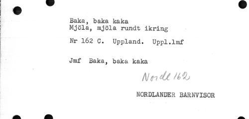 //// A'':. //// Baka, baka kaka //// Mjöla, mjöla rundt ikring //// Nr 162 C. Uppland. Uppi.lmf //// Jmf Baka, baka kaka //// /t/fi //// NORDLANDER BARNVISOR ////