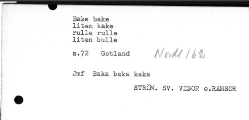 //// } //// Bake bake //// liten kake //// rulle rulle //// liten bulle //// s.72 Gotland //// ! Jmf Baka baka kaka //// i //// i //// STR(M. SV. VISOR o.RAMSOR ////
