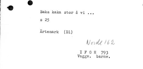 //// j Baka kaka stor å vi ... //// I s 2$ //// Ärtemark (Dl) //// I F G H 793 //// Vaggv. barnv. ////
