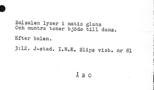 //// Balsalen lyser i matis glans //// Och muntra toner bjödo till dans. //// ) //// Efter balen. ^ //// 3:12. J-stad. I.N.E. Slips visb. nr 81 I //// 5 //// i //// 5 //// i //// ÅBO //// H //// e //// E //// H ////