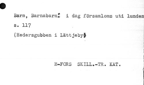 //// Barn, Barnabamt i dag församloms uti lunden //// s. 117 //// (Hedersgubben i Lättjeby§ //// t //// H-FORS SKILL.-TR. KAT. i //// t //// .1 //// ä //// t- //// L- //// B //// = ////