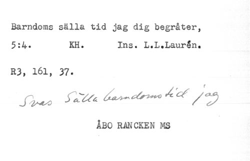 //// Barndoms sälla tid jag dig begråter, //// 5:4- KH. Ins. L.L.Laurån. //// R3, 161, 37. //// * //// ÅBO RANCKEN MS ////