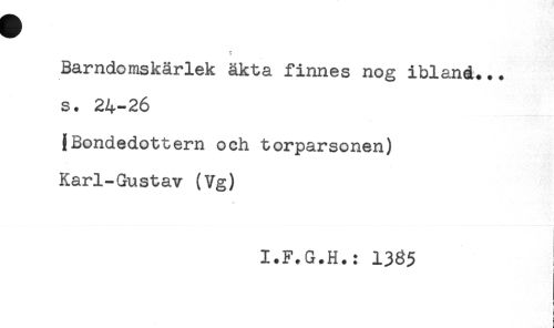 //// Barndomskärlek äkta finnes nog ibland... //// s. 24-26 //// {Bondedottern och torparsonen) //// Karl-Gustav (Vg) //// I.F.G.H.: 1385 ////