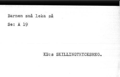 //// Barnen små leka så //// Se: A 19 //// KB:s SKILLINGTRYCKSREG. ////
