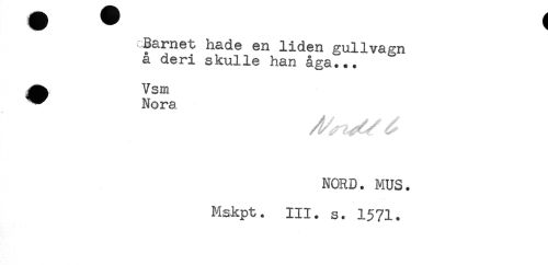 //// Barnet hade en liden gullvagn //// a deri skulle han aga... //// ^^ Nora //// NORD. MUS. //// Mskpt. III. s. 1571. ////