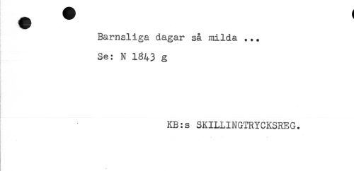 //// Barnsliga dagar så milda ... //// Se: N 1843 g //// KB:s SKILLINGTRYCKSREG. ////