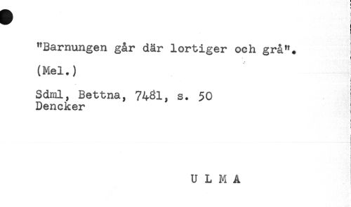 //// t //// ! //// "Barnungen går där lortiger och grå". //// t //// (Mel.) //// t. //// Sdml, Bettna, 74^1, s. 50 //// Dencker //// i //// i //// i //// ) //// i //// ! //// U L M A ////