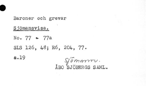 //// Baroner och grevar //// * //// SjÖmansvisa. //// No. 77 77a //// SLS 126, 43; R6, 204, 77. //// a.19 r,'^ //// ÅBO SJÖBERGS SAML. ////