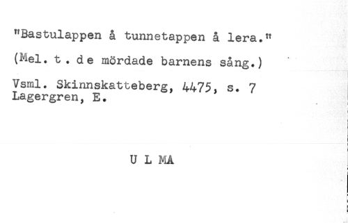//// "Bastulappen å tunnetappen å lera." //// (Mel. t. de mördade barnens sång.) //// Vsml. Skinnskatteberg, 4475, s. 7 //// Lagergren, E. //// ^ i //// t //// U L ]V{A //// g //// a //// = //// a //// i //// . ) ////