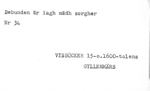 //// Bebunden år iagh mädh sorgher //// Nr 34 //// VISBÖCKER 15-o.l600-talens //// GYLLENMÅRS ////