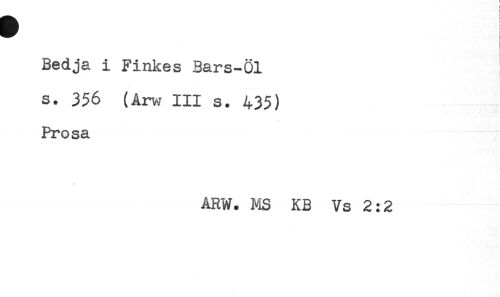 //// Bedja i Finkes Bars-Öl //// s. 356 (Arw III s. 435) //// Prosa //// ARW. MS KB Vs 2:2 ////