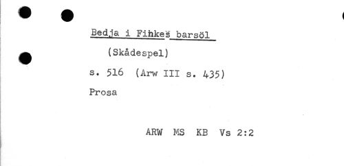 //// Bedja i Fihkeg barsö1 //// ^ (Skådespel) //// s. 516 (Arw III s. 435) //// Prosa //// ARW MS KB Vs 2:2 ////