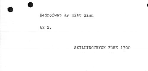 //// Bedröfwat är mitt Sinn //// 42 S. //// SKILLINGTRYCK FÖRE 1700 ////
